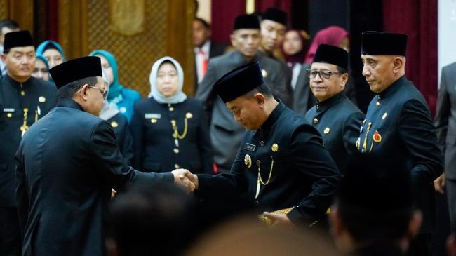 SK perpanjangan itu diserahkan Pj. Gubernur Jawa Timur Adhy Karyono, bersamaan dengan penyerahan SK perpanjangan masa jabatan 7 orang Pj Bupati daerah lainnya di Gedung Negara Grahadi, Surabaya, Selasa (24/9/2024).
