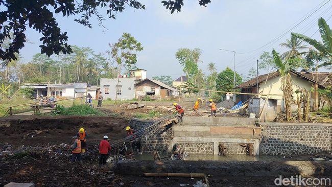 "Tapi yang ikut hanyut kemarin karena besarnya debit air yang rata dengan bibir sungai adalah hanya bekisting saja. Bekisting itu hanya triplek dan kayu-kayu, rangka besinya pun masih bisa dipakai, rangka besinya masih utuh belum selesai pembesian kemarin," sambungnya.