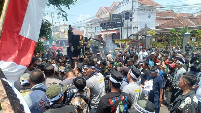 "Masuk-masuk, biarkan kita masuk. Ini semua demi keadilan," teriak massa sambil berorasi.