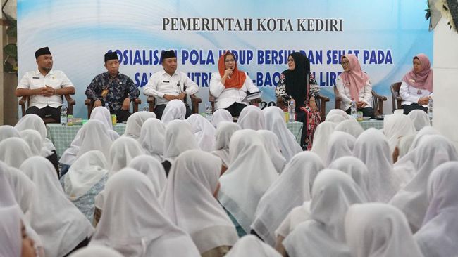 Pj Wali Kota Kediri Zanariah memberikan arahan dalam Sosialisasi PHBS Pondok Pesantren. Sosialisasi ini diikuti oleh 370 santri dari Pondok Pesantren Putri Al Baqoroh.