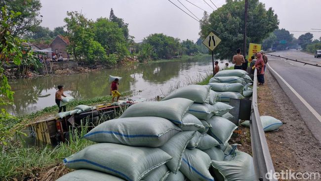 "Dari pengakuan sopir dia mengantuk, kemudian truk muat biji plastik tersebut tercebur masuk sungai," kata Sugeng saat dihubungi.
