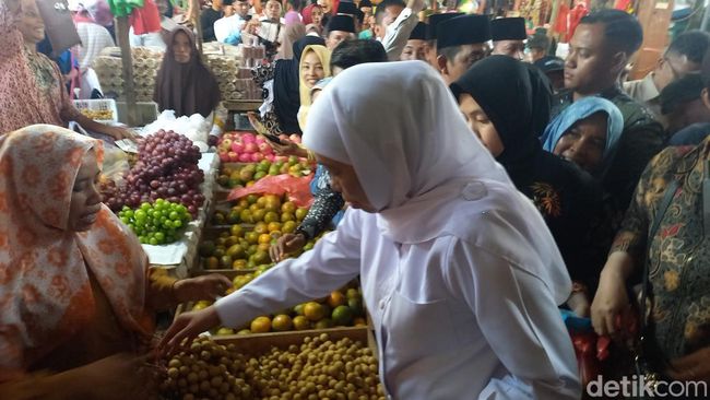 Dalam kunjungannya, Khofifah memantau langsung kondisi pasar dan harga sembako. Ia mengaku mendapatkan aspirasi dari pedagang pasar, agar pasar tidak direlokasi.
