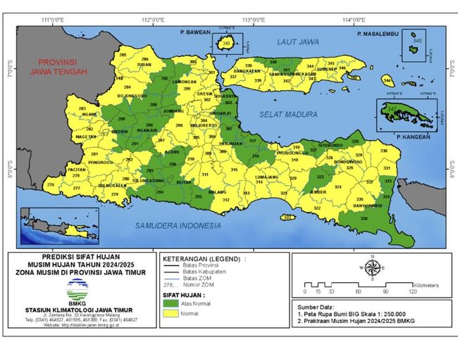 BMKG telah merilis prediksi awal musim hujan di 38 kabupaten/kota se-Jawa Timur. Dari prediksi tersebut, mayoritas wilayah akan memasuki musim hujan pada November 2024.