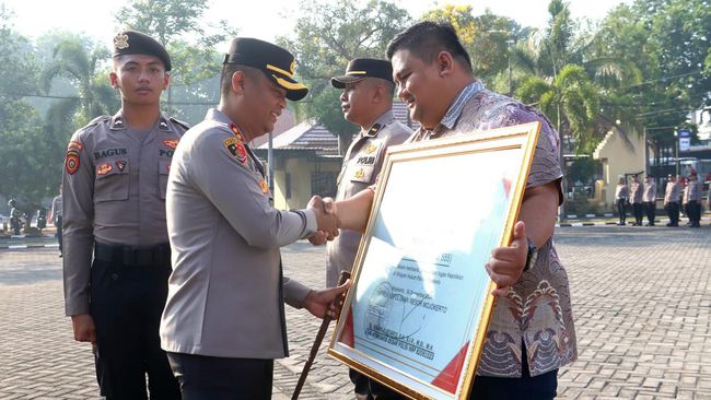 Kapolres Mojokerto AKBP Ihram Kustarto memberikan penghargaan kepada tujuh warga. Sebab, mereka selama ini membantu tugas kepolisian di Bumi Majapahit.