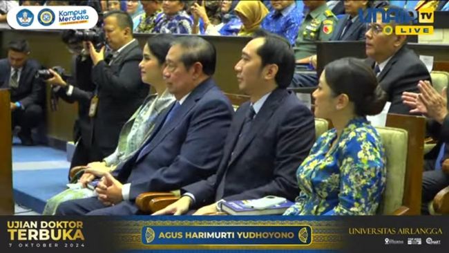 Pada ujian S3 Prodi Pengembangan Sumber Daya Manusia pagi ini, AHY ditemani sang ayah Presiden RI ke-6 Susilo Bambang Yudhoyono hingga keluarganya. Kedatangan mereka untuk memberikan semangat pada AHY.