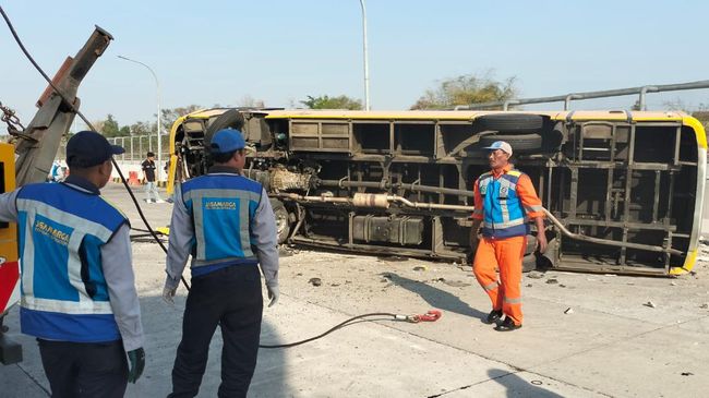 "Saya lihat langsung dari rest area. Tiba-tiba bus itu menabrak pembatas jalan hingga terguling," tambahnya.