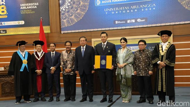 Menteri Agraria dan Tata Ruang/Kepala Badan Pertanahan Nasional (ATR/BPN) Agus Harimurti Yudhoyono (AHY) dinyatakan lulus cumlaude usai sidang doktoral terbuka di Unair. Sebelum dinyatakan lulus AHY sempat mendapatkan pertanyaan dari Rektor Unair.