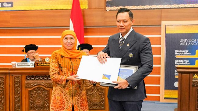Ketua Umum IKA Unair Khofifah Indar Parawansa mengucapkan selamat dan turut berbahagia setelah Ketua Umum Partai Demokrat sekaligus Menteri ATR/BPN Agus Harimurti Yudhoyono meraih gelar doktor. Gelar doktor diberikan Unair usai AHY lulus usai Ujian Doktor Terbuka.
