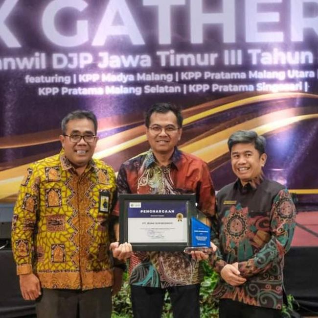 Penyerahan penghargaan dilakukan dalam acara Tax Gathering yang digelar Kanwil DJP Jawa Timur III, di Savana Hotel and Convention, Malang, 19 September 2024. Penghargaan diterima Assistant Manager Tax PT Merdeka Copper Gold Tbk, Tri Wahyudi.