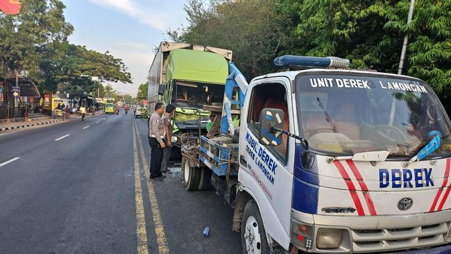 Truk yang dikemudikan Derry menabrak truk lain yang belum diketahui identitasnya di jalan poros nasional Lamongan-Babat, tepatnya di Jalan Panglima Sudirman depan Plaza Lamongan, Jumat (18/10/2024).