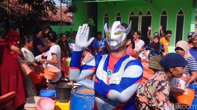 Selain menghibur, kata Sugeng, keberadaan ultraman ini membantu warga dengan membawakan jirigen maupun ember wadah air bersih untuk ditata di sekitar lokasi dropping air bersih.