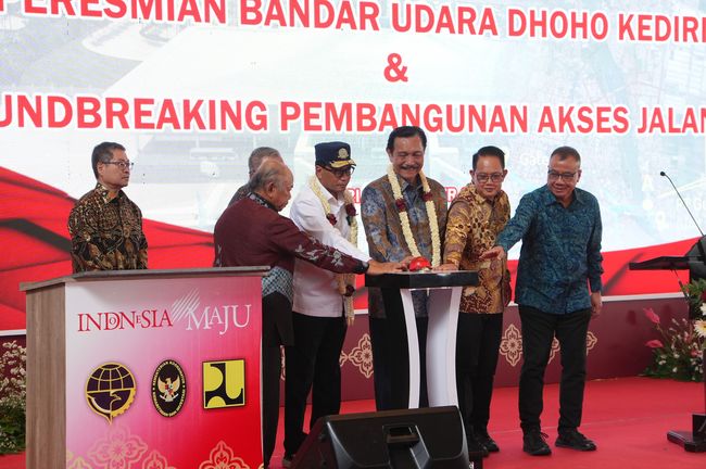Menteri Koordinator Bidang Kemaritiman dan Investasi (Menko Marves) Luhut Binsar Pandjaitan meresmikan Bandara Internasional Dhoho Kediri, kemarin.