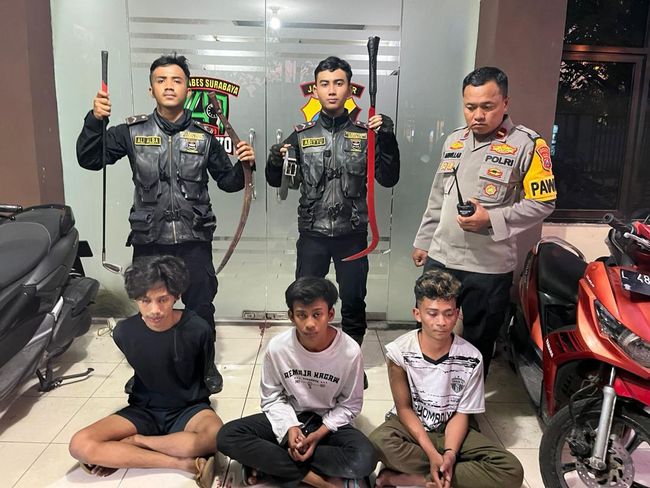Ketiganya diamankan ketika petugas berpatroli di kota pahlawan pada Jumat (18/10/2024) hingga Sabtu (19/10/2024). Ketika hendak kembali ke markas sekitar pukul 04.00 WIB, Tim Respati Satsamapta Polrestabes Surabaya melihat segerombolan remaja akan tawuran di Kapasari Surabaya sesuai live Instagram yang dilakukan 2 kelompok remaja itu.