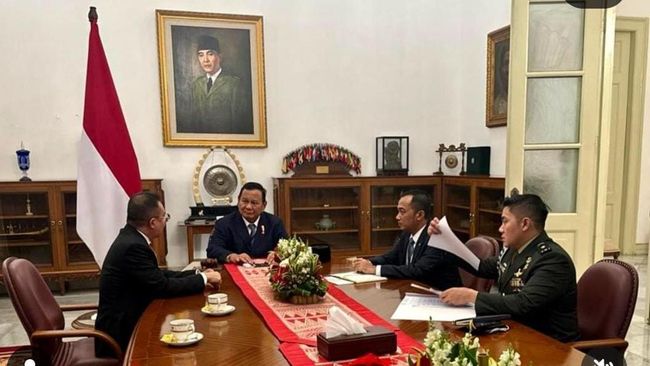 Hal itu diungkap Sufmi Dasco Ahmad dalam unggahan di akun Instagramnya. Dalam foto itu tampak Prabowo bersama Menteri Sekretaris Negara Prasetyo Hadi, Sekretaris Kabinet Teddy Indra Wijaya dan Dasco.