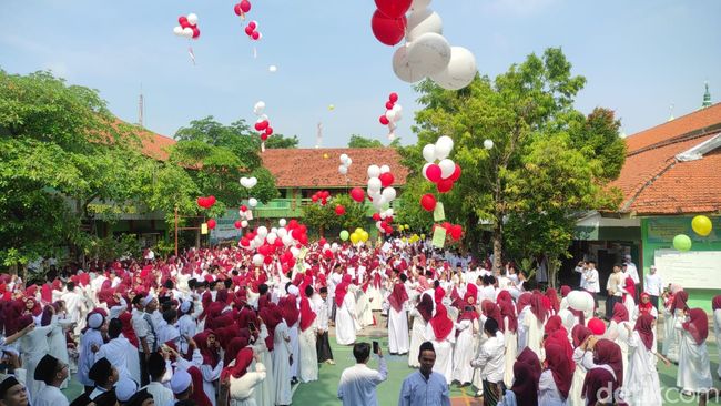 Ribuan siswa di Lamongan menggelar peringatan Hari Santri Nasional (HSN) dengan cara unik. Mereka menulis harapan terhadap pemerintahan Prabowo-Gibran untuk kemudian digantung di balon.