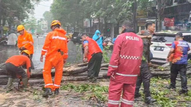 "Ada beberapa kejadian pohon tumbang di dalam kawasan kota. Sehingga kami terpaksa harus membagi tim. Karena kejadiannya nyaris bersamaan," tanda Yuliono Triandana.