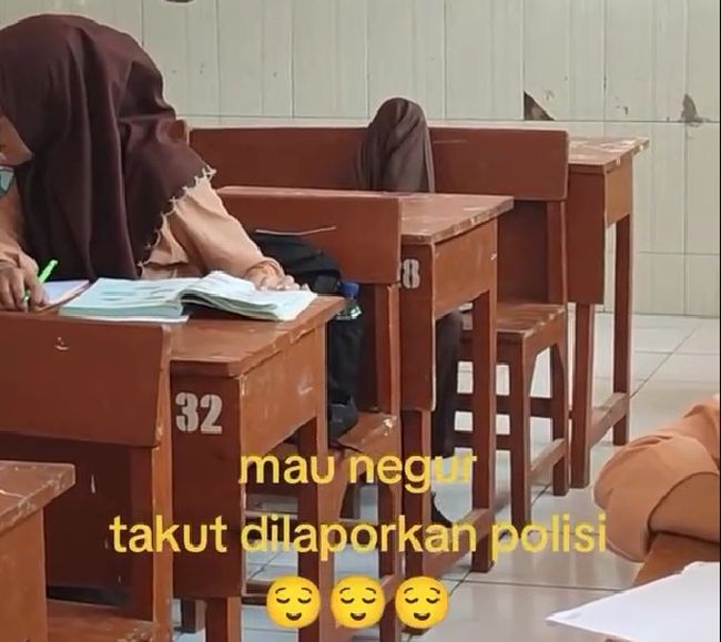 Konten itu viral setelah diunggah di media sosial. Dalam unggahan itu, tampak seorang guru yang sedang mengajar, tengah memperlihatkan suasana di dalam kelas. Tampak para murid perempuan sedang mengerjakan buku latihan. Namun, ada pula satu murid laki-laki yang duduk di barisan belakang, tampak rebahan di atas kursi.