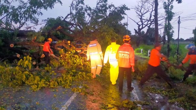 Puluhan petugas BPBD, kata Boby, juga mendapatkan laporan pohon yang nyaris tumbang di depan pabrik porang Krapyak. "Iya, setelah itu evakuasi di depan pabrik porang, informasinya ada pohon yang mau tumbang," papar Boby.
