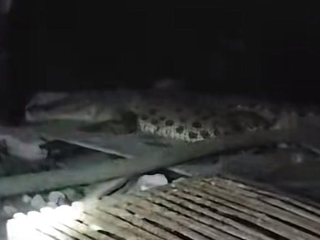 Dari video amatir yang direkam oleh warga, buaya itu terlihat berukuran cukup besar. Buaya itu juga terlihat tenang meski jadi tontonan warga, dan juga disorot lampu senter.