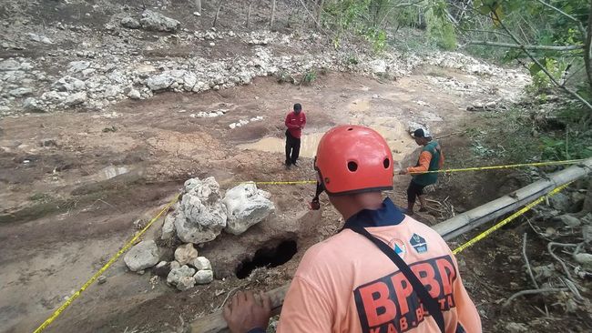 Ivong menyebut lubang itu diduga karena tanah gerak, namun saat ini BPBD Kabupaten Blitar masih melakukan assessment terkait temuan lubang itu.