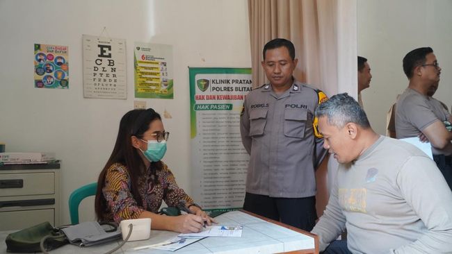 Polres Blitar menggandeng tim kesehatan dari Rumah Sakit Bhayangkara Kediri dalam melaksanakan pemeriksaan kesehatan itu.