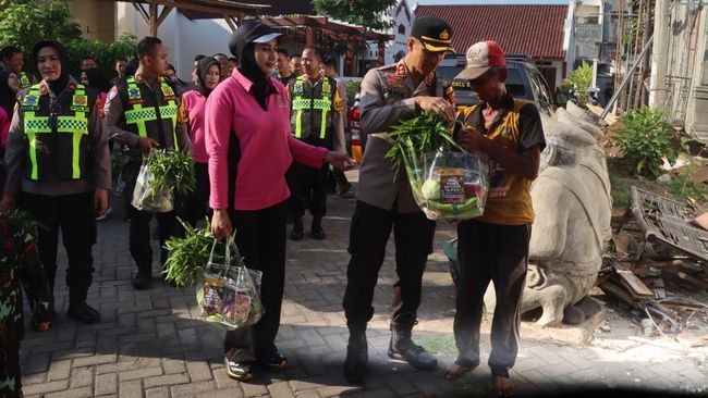 Polres Pasuruan Kota bersama Bhayangkari membagikan paket sayuran kepada masyarakat. Paket sayuran segar yang dibagikan merupakan hasil panen dari pekarangan yang dikelola oleh Bhayangkari.