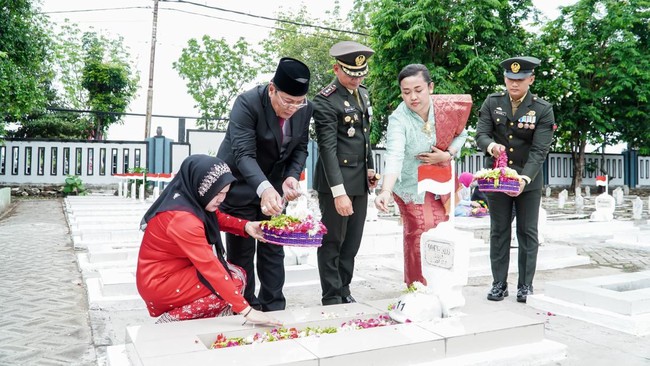 Pemerintah Kabupaten Lamongan menggelar upacara peringatan Hari Pahlawan 2024 di Alun-alun Lamongan, Minggu (10/11/2024). Dalam kesempatan ini, digelar drama kolosal oleh komunitas seni Songgolangit mengenai jejak patriot.