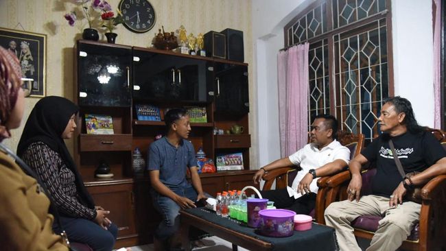 Pj Bupati Sidoarjo Muhammad Isa Ansori mengunjungi rumah Yudha Wahyu Palupi Bagus Tejowono, warga Desa Gelam, Kecamatan Candi, yang baru saja pulang setelah menjadi korban penipuan pekerjaan di Kamboja.