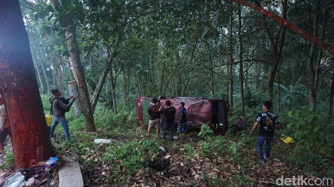Setelah menabrak mobil Brio, mobil Zebra terjun ke jurang di sisi kanan jalan. Mobil sarat penumpang itu berhenti di kedalaman sekitar 5 meter dari permukaan jalan. Kondisi minibus tersebut rusak parah.