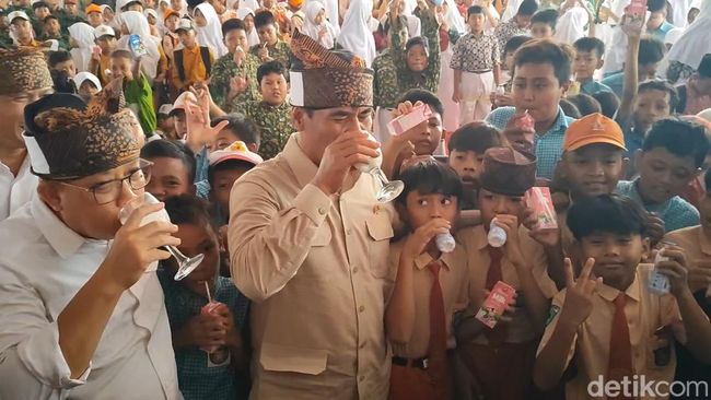 Menteri Amran yang datang ke lokasi langsung memimpin minum susu bersama. Ia membaur bersama anak-anak sambil membawa gelas susu. Anak-anak terlihat bahagia.