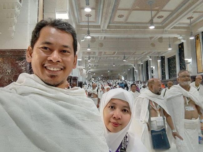 Tak hanya Baharudin, namun kejadian unik itu juga dialami oleh istrinya, Izzatul Laila (41) yang juga turut ikut menunaikan rukun Islam kelima bersama.