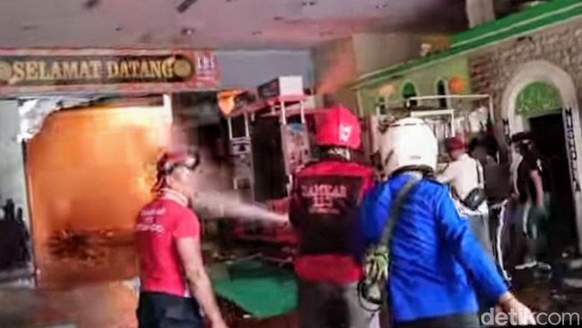 Selanjutnya, dilakukan proses pembasahan agar si jago merah agar tidak menyala kembali. Termasuk, ke bangunan lain yang ada di kanan kiri lokasi.