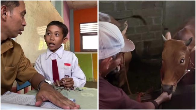 Namun, salah seorang siswa bernama Desril memberikan jawaban yang tak terduga. Sapi di rumah tetangga bernama Pak Kamal makannya martabak telur.