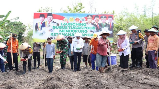 Polres Mojokerto meluncurkan Gugus Tugas (Gustug) Ketahanan Pangan bersama poktan. Gustug ini langsung bergerak menanam jagung seluas 1,5 hektare.