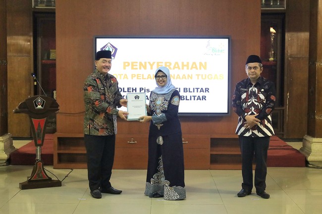 Pjs Bupati berpamitan dengan Pemkab Blitar dalam penyerahan nota pelaksanaan tugas. Dalam kegiatan itu, Pjs Bupati turut berharap masyarakat Kabupaten Blitar semakin maju.