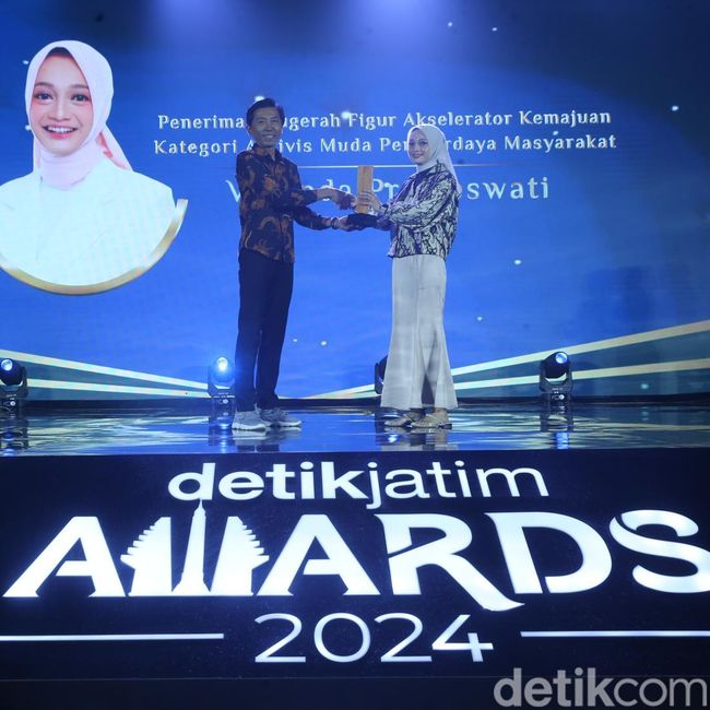 Tokoh Muda Vinanda Prameswati menerima penghargaan di detikJatim Awards 2024. Anugerah Figur Akselerator Kemajuan, Kategori Aktivis Muda Pemberdaya Masyarakat diberikan kepada Vinanda atas dedikasi dan berbagai inisiatif yang telah dilakukan.