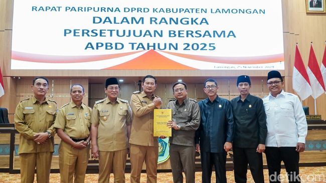 Pemkab Lamongan bersama DPRD Lamongan mengesahkan rancangan peraturan daerah (Raperda) Anggaran Belanja dan Pendapatan Daerah (APBD) Lamongan tahun anggaran 2025.