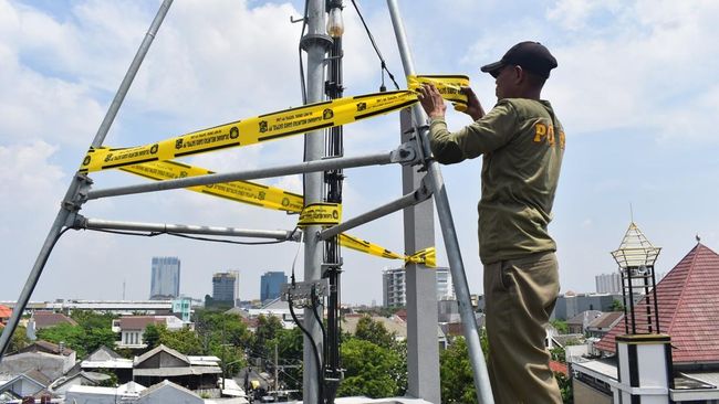 Satpol PP Surabaya menyegel tower telekomunikasi tak berizin. Penyegelan dilakukan karena tower telekomunikasi itu tidak memiliki surat Persetujuan Bangunan Gedung (PBG).