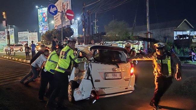 Mobil warna putih bernopol AG 1084 B tertabrak sekitar pukul 18.40 WIB. 4 Penumpang Sigra sekaligus sopir selamat.