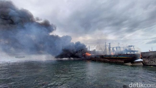 Dua kapal pengangkut ikan yakni KMP Bahtera Makmur dan KMP Dinda Jaya terbakar di Dermaga PT Pasifik Masami Indonesia. Kebakaran tersebut tak