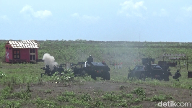 Sejumlah pesawat tempur TNI AU yakni Super Tocano melakukan penembakan ke wilayah musuh disusul pesawat F-16, T50i Golden Eagle dan Sukhoi melakukan penembakan untuk menghancurkan sasaran musuh.