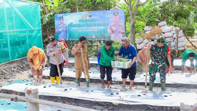 Upaya Polri/TNI untuk membantu dan mendukung ketahanan pangan di Bojonegoro terus dilakukan hingga di tingkat pedesaan. Terbaru, Polri/TNI menggandeng kelompok tani dan masyarakat umum.