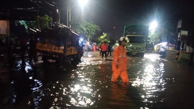 Jembatan mulai terendam sejak pukul 19.00 WIB, Jumat (6/12/2024). Karena hujan terus mengguyur dan air sungai terus meningkat, ketinggian banjir di jalan raya terus naik.