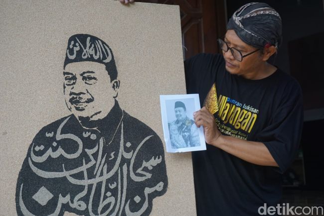 "Saya membuat lukisan pasir sejak 2017. Awalnya saya bikin lukisan potret saja. Saat itu dianggap kerajinan, tapi lama-kelamaan bisa diterima masyarakat sebagai seni pasir," terangnya kepada wartawan di rumah kreatifnya, Sabtu (7/12/2024).