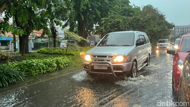 Hujan deras membuat ruas jalan di Surabaya terendam. Terendamnya jalan membuat lalu lintas merambat hingga kendaraan mogok.