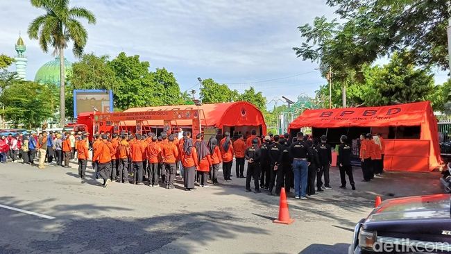 Rabu (11/12/2024) pagi, ratusan tim gabungan mulai menggelar apel bersama di depan posko tersebut. Apel kesiapsiagaan dalam rangka siaga darurat hidrometeorologi melibatkan TRC BPBD, PUPR, Forum Pengurangan Resiko Bencana (FPRB) ,Tagana, Pramuka, Senkom, PCC, PUPR, dan PMI.