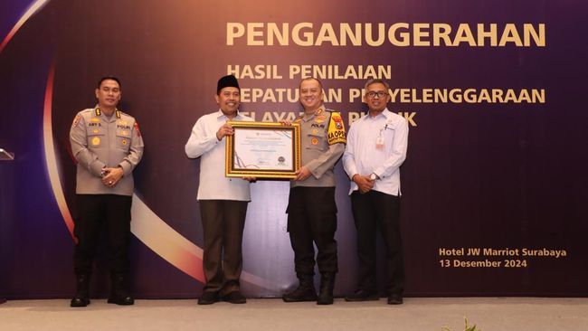 Penghargaan dari Ombudsman RI itu diterima langsung oleh Kapolres Blitar AKBP Wiwit Adisatria, di Hotel JW Marriott Surabaya, Jumat (13/12/2024).