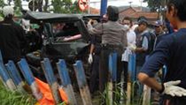 Dan brakkkk!! Tiga mobil yang sudah menyentuh rel langsung disambar kereta dari arah selatan. Setelah menabrak, kereta penumpang warna putih itu tetap melaju. Akibat tabrakan hebat itu, tiga mobil itu langsung terpental beberapa meter dan rusak berat.