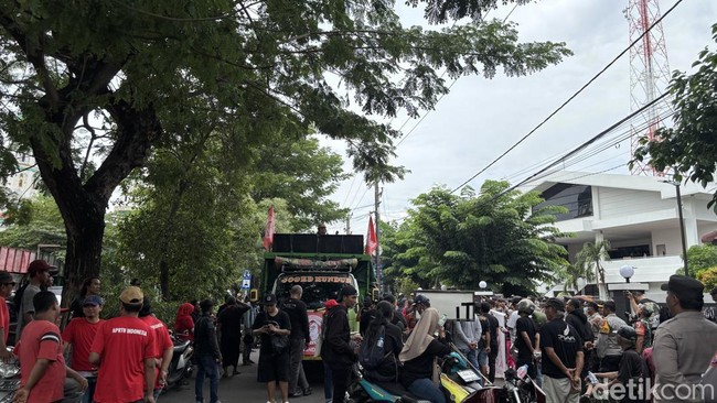 Pantauan detikJatim, demo itu berlangsung sejak sekitar pukul 09.30 WIB. Massa aksi membentangkan spanduk serta membawa satu mobil komando. Mereka juga berorasi menyampaikan tuntutannya.