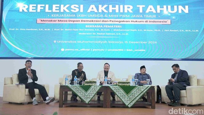 Lembaga Konsultasi dan Bantuan Hukum Universitas Muhammadiyah Sidoarjo (LKBH Umsida) dan Majelis Hukum dan HAM PWM Jatim, menggelar Refleksi Akhir Tahun. Acara ini bertema Menakar Masa Depan Demokrasi dan Penegakan Hukum di Indonesia.